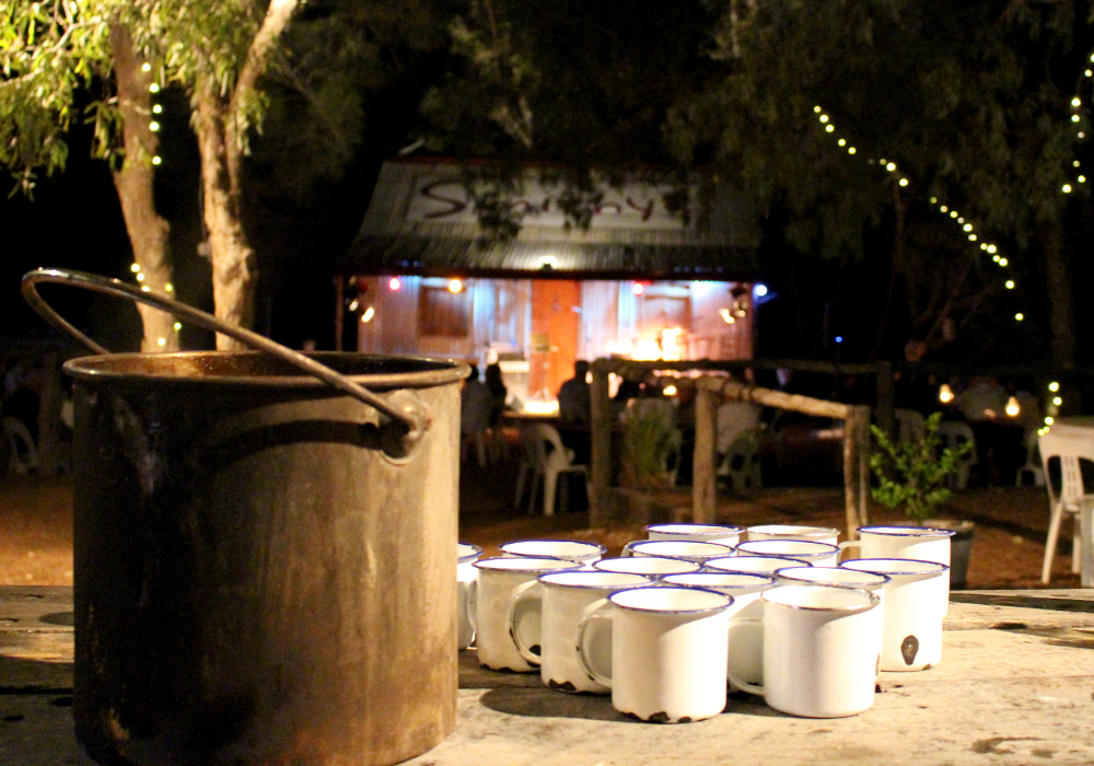 Tonight, settle back and enjoy an evening to remember dining under the stars beside the Coolibah lined river. Begin with sunset nibbles followed by a two-course table service dinner, featuring our camp oven themed modern cuisine. A good selection of wine and cold beer is available for purchase from our licensed cash bar.